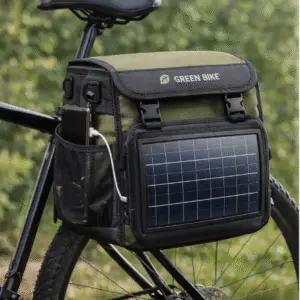 Green Bike Solar Pannier es un accesorio sostenible para bicicletas urbanas diseñado para el día a día. Fabricado con materiales reciclados, ofrece 20 L de capacidad impermeable y un panel solar integrado que permite cargar dispositivos móviles mientras pedaleas. Funcional, resistente y ecológico, es la solución ideal para quienes buscan movilidad práctica sin renunciar al compromiso con el medio ambiente.